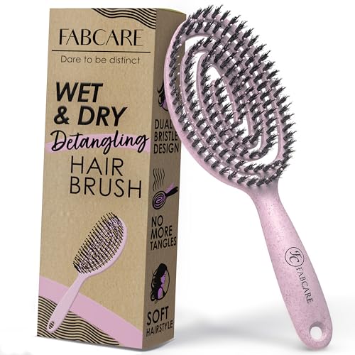 FABCARE Ekologisk hårborste, vildsvinsborst, rund inkl. Ebook – utredningsborste med dubbel spiralfjäder – hårborstning utan tovor – professionell utredningsborste för varje hårtyp – hårborste damer