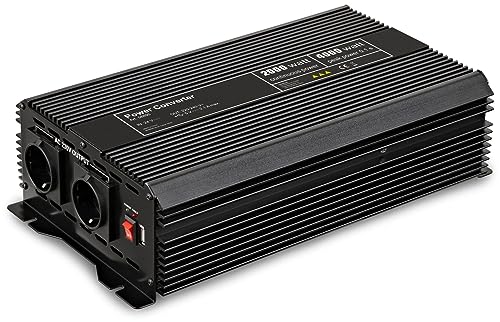 novopal 1000 W Ren sinus- spänningsomvandlare bil växelriktare 12 V till 230 V omvandlare-växelriktare med 2 EU-uttag och USB-port inkl. 5 meter fjärrkontroll – toppeffekt 2 000 watt