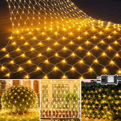 Joycome LED-ljusnät jul utomhus 3 x 2 m 200 LED julljus med uttag, timer, 8 lägen vattentät mesh ljus för balkong trädgård terrass skyltfönster inomhus dekoration - varmvit