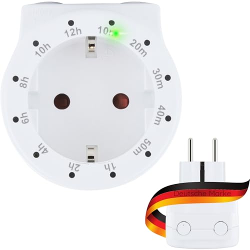 deleyCON 1x Digital Timer Nedräkningsfunktion Timer Omkopplare Brytare Uttag 1 till 5 Timmar Omkopplingstid max. 1800W Kontaktskydd Inomhus Vit