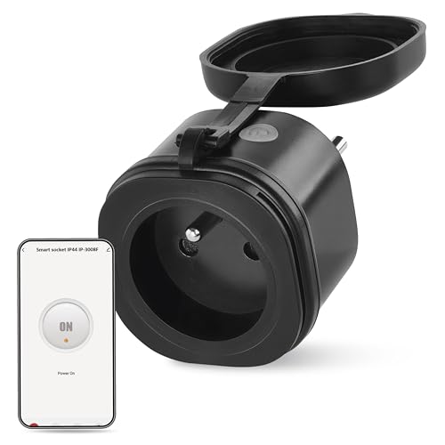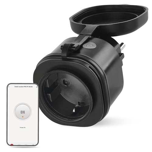 UNITEC WIFI adapterkontakt utomhus, WLAN smart uttag, med timer och timer, röststyrning och app, för utomhusbruk, IP44