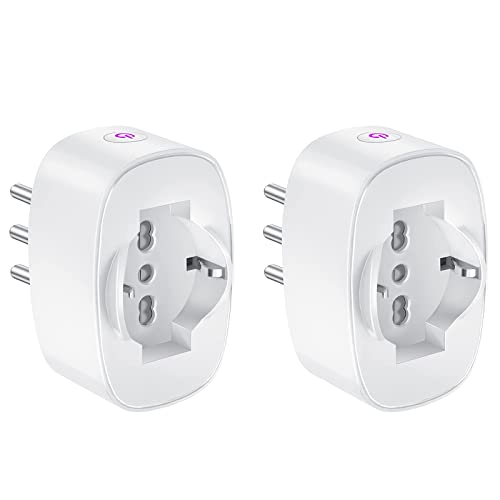 SURFOU Smart WiFi-uttag, Italienskt smart eluttag av L-typ med timer, kompatibel med Alexa och Google Home, 2 st hemautomation tidsfunktion med förbrukningsmätare, smart liv/Tuya