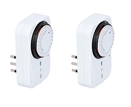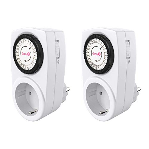 Garza - Inomhus analog timer, set med 2, programmerbart uttag, daglig timer (24h), Max 3680 W, 16a/230 V/50 Hz, vit