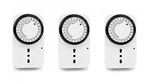 24 timmars mekanisk timer, uttag, vit, idealisk för programmering av elektriska apparater på och av.