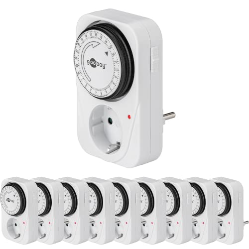 Goobay 64896 timer uttag – analog timer inuti – uttaguttag – 15 minuters intervall – kontroll LED – kontinuerlig drift möjlig – uppsättning om 10 st, liten
