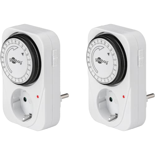 Goobay 64893 timer uttag – analog timer inomhus – eluttag – 15 minuters intervall justerbar – lämplig för inomhusbruk – LED-kontroll – kontinuerlig drift möjlig – uppsättning av 2