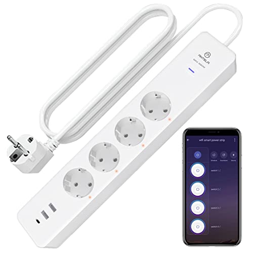ANTELA Smart Grenuttag 16A 3680W med Energiövervakning och Timer,4 Separat Styrbara Uttag och 3 USB-portar,Kompatibel med Alexa och Google Home, Appkontroll, Överspänningsskydd,Kortslutningsskydd