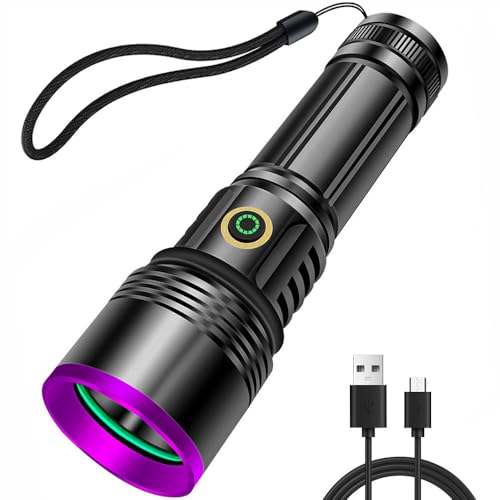 LEKIA UV ficklampa 365 nm kraftfull UV-lampa, typ C USB uppladdningsbar UV ljus svart ljus ficklampa för husdjur urin detektering bärnsten skorpion rockhounding A/C igenkänn av läckage