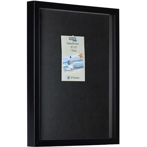 Caesar Home stor skugglåda 16 x 20 svart ram med UV-skydd | 2 bakgrundsalternativ, svart filt eller naturligt linne | häng horisontellt eller vertikalt | 16 vita huvudstift ingår