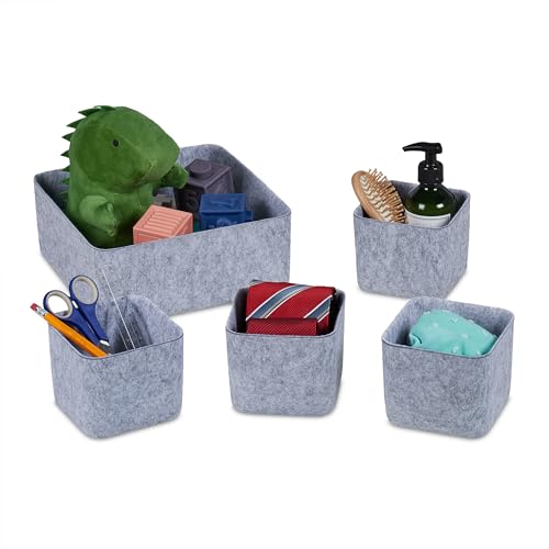 Relaxdays Organizer, 5-delad skåporganisatör för garderob, låda med UV, av filt, 2 storlekar, grå