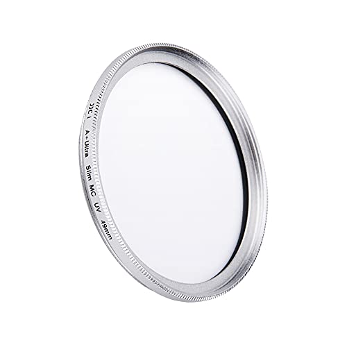 JJC 49 mm UV-filter ultratunt flerbelagt ultraviolett skydd linsfilter för Canon Sony DSLR-objektiv med 49 mm gänga (SILVER)
