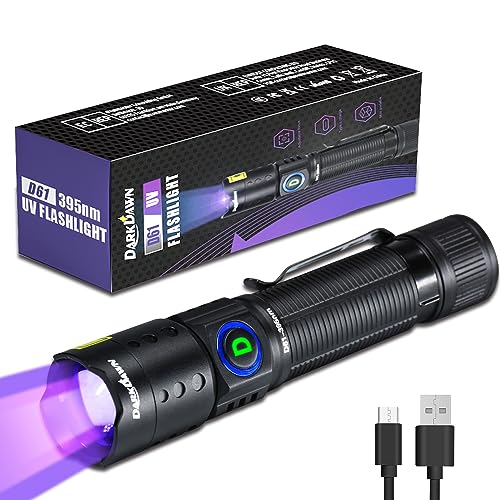 DARKDAWN UV Flashlight 395nm Black Light Mini USB Rechargeable Ultraviolet LED Blacklight Woods Lamp Powerful Fluorescent Portable Detector for Pet Urine Stains, Scorpions, Resin Curing