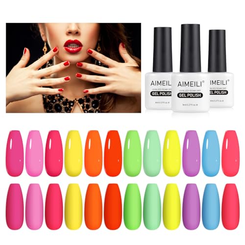 AIMEILI Gel Nail Polish Set, 10ml 12 Colors Soak Off UV LED Gel Nail Polish Nail Art Gel Polish Gift Kit 9