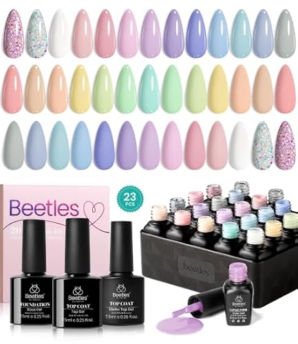 Beetles UV-gel, nagellack, pastellset – 23 stycken 20 färger med 3 överlack och underlag, glänsande och mattor för vår, sommar, flickor, färger, gnistrande glitter, gellack, naglar, konst