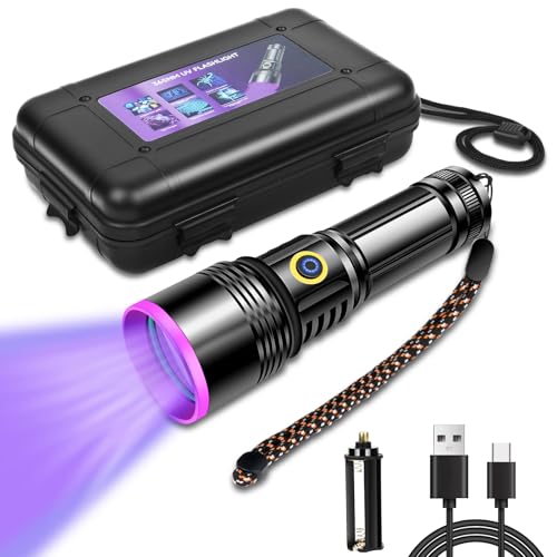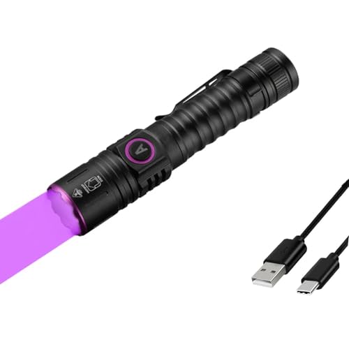 LEKIA UV ficklampa 365 nm kraftfull UV-lampa, typ C USB uppladdningsbar UV ljus svart ljus ficklampa för husdjur urin detektering bärnsten skorpion rockhounding A/C igenkänn av läckage
