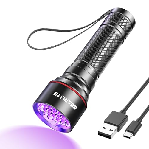 GEARLITE LED svart LED-ficklampa med 21 lysdioder, mini UV-lampa med 395 nm, UV-lampa för geocaching, husdjursurindetektor, torkade fläckar från hundar och andra husdjur