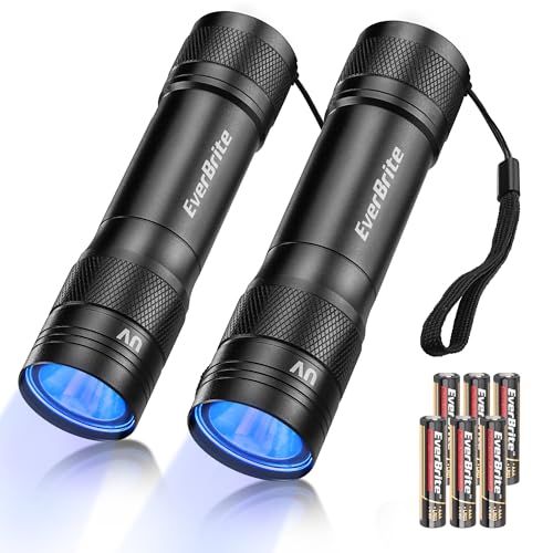 EverBrite UV ficklampa 365 nm, svart ljus med LED & aluminiumhölje, halkfritt handtag, urin detektor för husdjur som hundar och katter, sedeldetektor, inklusive 6 AAA-batterier