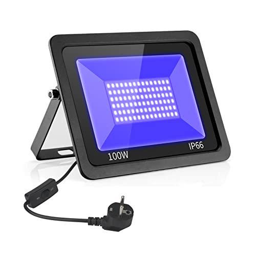 Everbeam 365nm 100W UV LED-strålkastare med Svartljus - Högpresterande LED-lampor, IP66 Vattentät, Ultraviolett översvämningsbelysning för akvarium, inomhus- eller utomhusfester,Halloween dekorationer