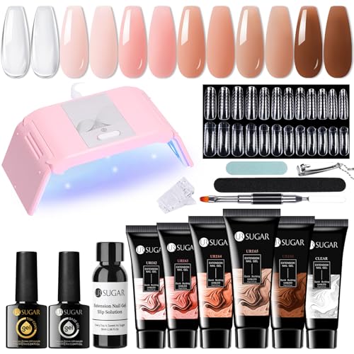 UR SUGAR Polygel startset med UV-lampa, vikbar 36 W, 6 polygelfärger, tub, nagelset, gelnaglar, startset, nagelförlängning, polygelset, startset, UV-naglar set, startset, manikyr, komplett