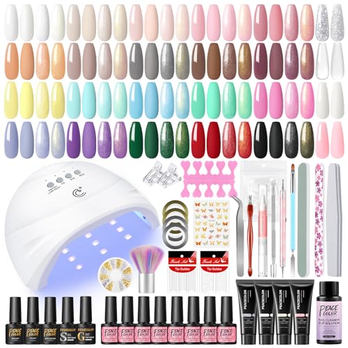 PEACECOLOR UV-nagellackset med lampa - 20 delar gel nagellack UV och 4 delar poly naglar gel gel gel naglar set bas och topplack gel naglar gör det själv set komplett nagelstudio gör det själv naglar