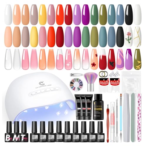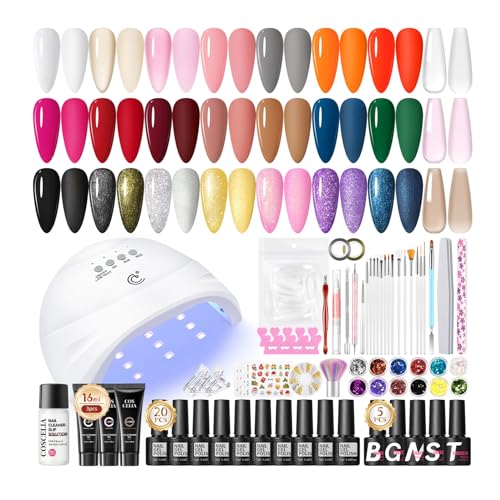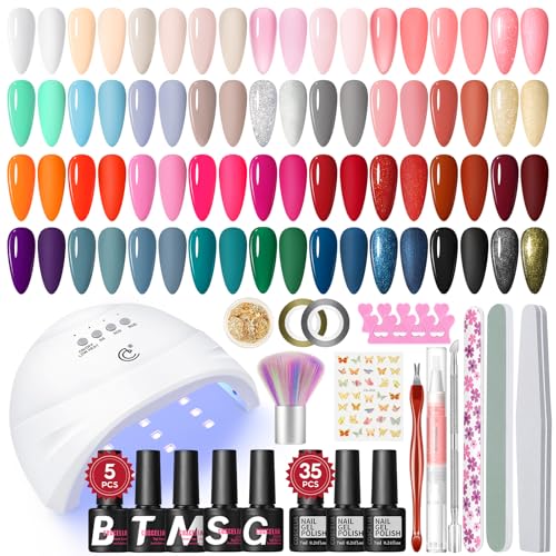 COSCELIA Nagelsats Gel Naglar Startset, 35 stycken UV nagellack Set med UV-lampa Gel Naglar Set Baslack Top Coat Nagel Ställer Gelnaglar för nybörjare Manikyr Set Julklappar för kvinnor