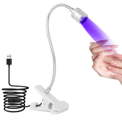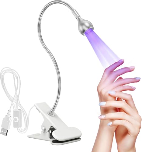 AiQInu UV-lampa naglar, LED-lampa för gelnaglar 3 W roterbar, nagellampa med USB och säkringsklämma, för gelnagellack, salong, hemmafixare (silver)