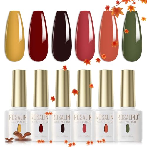 ROSALIND UV-nagellackset 6 färger gult orange rött vinrött mörkgrönt gel nagellackset färggel för gelnaglar Soak Off UV LED nagellack för UV-lampa gel naglar höstfärger 6ml