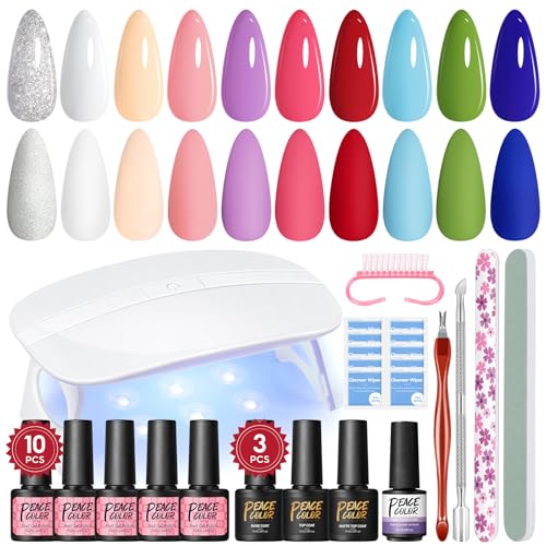 Peacecolor UV nagellack set med UV-lampa, 10 färger nagelset gelnaglar startset med bas och matt topp rock gel naglar set gel naglar själv set gåva för kvinnor 7 ml