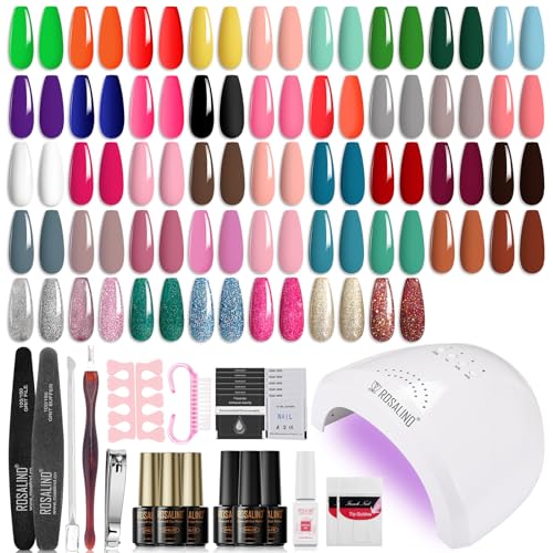 ROSALIND Semi Permanent Varnish Kit 43 färger grön orange röd blå rosa paljetter nagellack gel nagelkit komplett gel 48 W UV-lampa naglar gel kit semi permanent manikyrverktyg nagelkonst