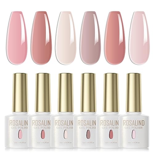 ROSALIND UV-nagellack Jelly 6 färger Rosa Ljusrosa Hudfärg Klassisk Genomskinlig Gel Nagellack Set Färg Gel för Naglar Soak Off Lack för UV-lampa