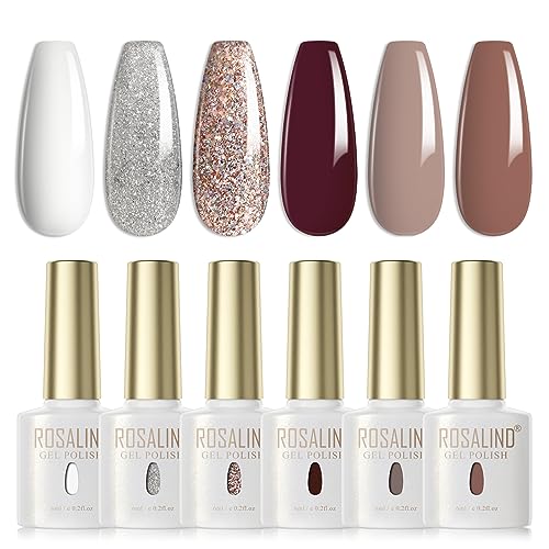 ROSALIND UV-nagellack 6 färger Vit grå brun glitter silver gel nagellack färg gel naglar Soak Off för UV-lampa nagelsalong design kit 6ml