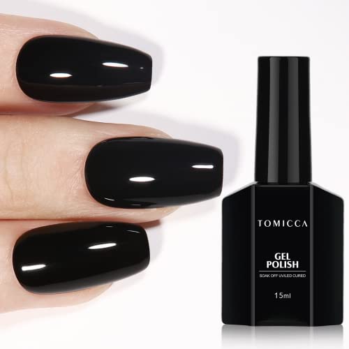 TOMICCA Gel Nail Polish, 1 Piece 15ml Black UV Nail Polish Soak Off UV LED Gel Polish Manicure DIY Home Gifts for Women