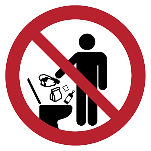 Signalklistermärke laminerat runt klistermärke vattentåligt NF ISO7010 – UV-beständigt laminerat lim – förbjudet att kasta föremål i toaletten – diameter 30 cm