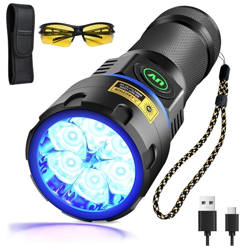 YOUTHINK LED Ficklampa 395 nm Ultraviolett Svart Ljus UV Ficklampa 128 Med UV Solglasögon För Hund Katt Urin, Husdjur Torra Fläckar, Sänginsekter, Farliga Läckor Och Skorpion