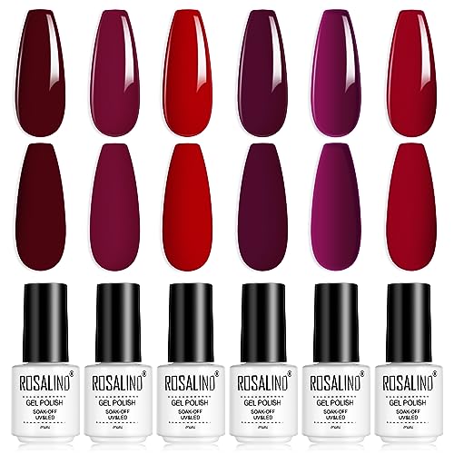 ROSALIND 6 Färger UV Gel Nagellack Set, Röda Färger Gellack, Gel Nail Polish Kit, UV Gel Shellac Nail Polish för DIY Nail Art Nail Design 6PCS