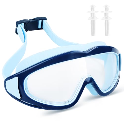 Byffoer simglasögon barn, dykglasögon barn bekväma simglasögon för pojkar flickor, dykglasögon anti-dimma, UV-skydd vattentäta för barn 3–15 år (blå)