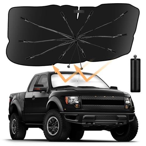 Arespark Solskydd för bil vindruta interiör, paraply bil solskydd med roterande axel, 140 x 75 cm hopfällbar bil solskydd, UV-skydd, för de flesta bilar, SUV, lastbilar