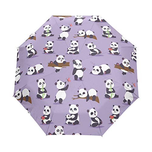 Panda lila veck paraply vindtät regn automatisk öppen stängning reseparaply UV-skydd för kvinnor män