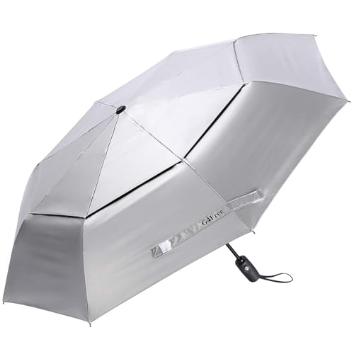 G4Free 42/46 tum resa hopfällbart paraply vindtätt kompakt UPF 50+ UV-skydd dubbel baldakin silverbeläggning sol regn paraply, Silversvart, 46 inch, Kompakt