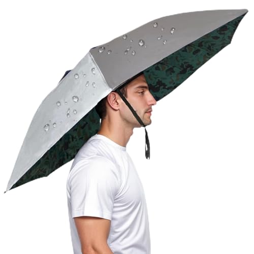 MAGT Paraply huvudparaply, multifunktionell vikbar vattentät UV skydd paraply hatt för utomhusbruk fiske camping (färg: Silver), silver, Klein