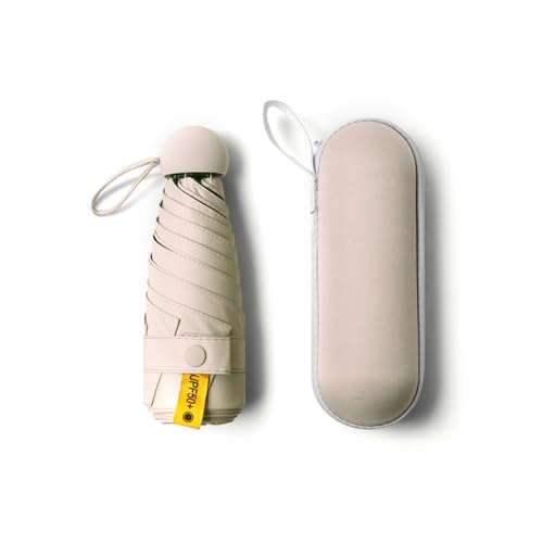 1 styck reseväskparaply, lätt paraply, mini-kompakt parasoll 6 spröt, med 1 förvaringslåda för rosa kapslar, färgglatt paraply, utomhus UV-skydd。lämplig för flickor som presenter, färgad, Klein