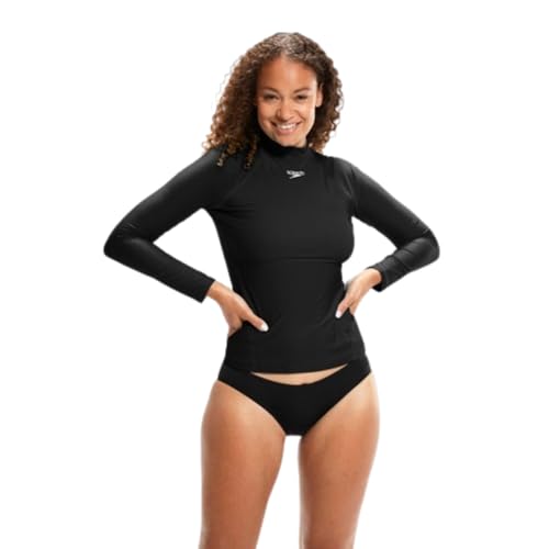 Speedo Dam långärmad solskydd utslag topp | UV-skydd | Rash Guard Rash Guard tröja (paket med 1), Svart, XXL