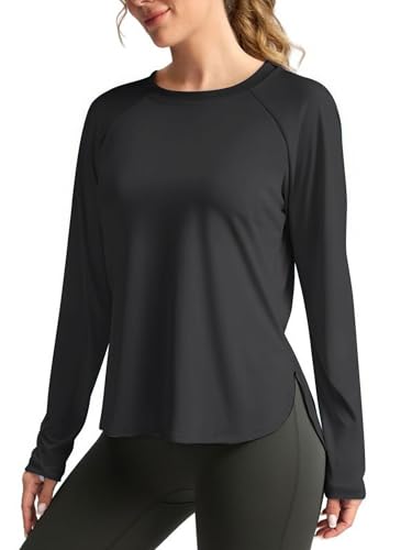 JTSONN Långärmad sporttröja för kvinnor, UPF 50 UV-skydd, löpartröja, snabbtorkande vandringströja, lätt ventilerande funktionell skjorta, långärmade tröjor, pullover, yoga, träning, sport, t-shirt,