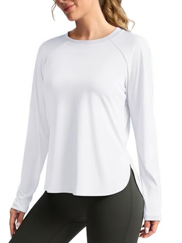 PINSPARK Sportskjorta dam UPF 50+ solskydd sport t-shirt funktionell skjorta långärmad löpartröja UV skjorta lätt långärmad tröja rund hals fitness yoga toppar rashguard, Vit, XXL
