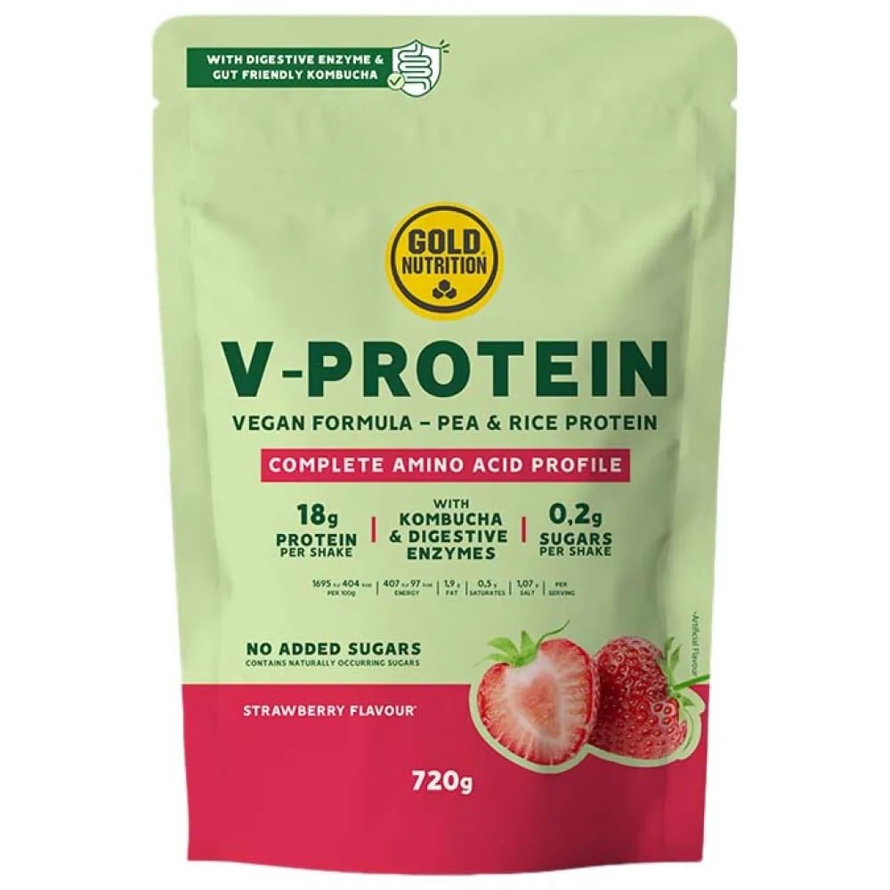 Gold Nutrition V Vegan Protein Strawberry 720g Durchsichtig