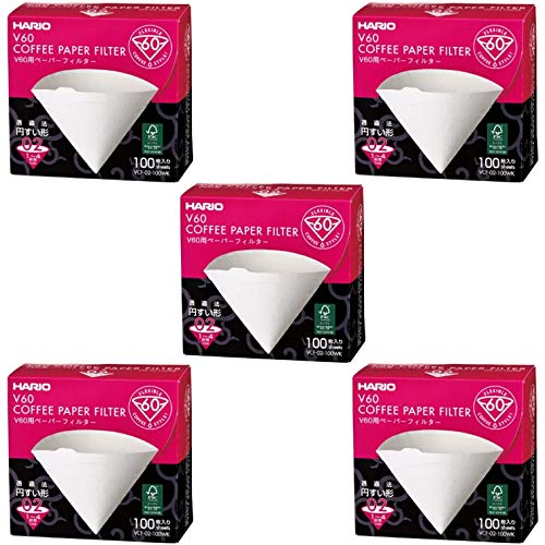 Hario 5 X V60 storlek 02 100 st lådor kaffe vita pappersfilter, 5 lådor värdeset (totalt 500 ark)