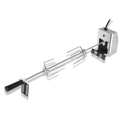 Froadp 117 cm grillspett av rostfritt stål med motor, 220–240 V, 8 x 8 mm, rostfritt stål, grillskewerset med 2 köttnålar, roterande spett, elektrisk grilltillbehör för gasgrill, träkolgrill (4 W)