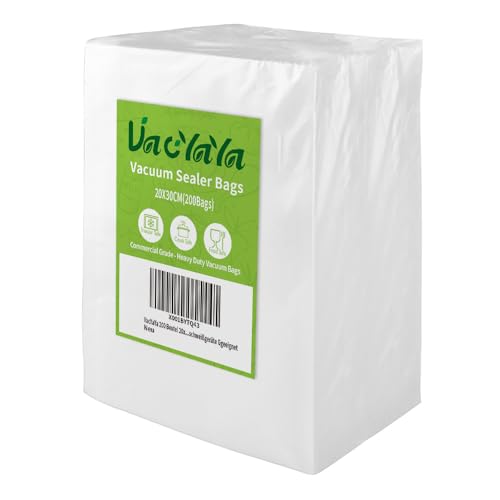 VacYaYa 200 påsar 20 x 30 cm vakuum mattätare maskin frys förvaringsväskor, Vac försegla en måltidspåsar med BPA-fri och slitstark sous vide vaccume tätning förskuren väska