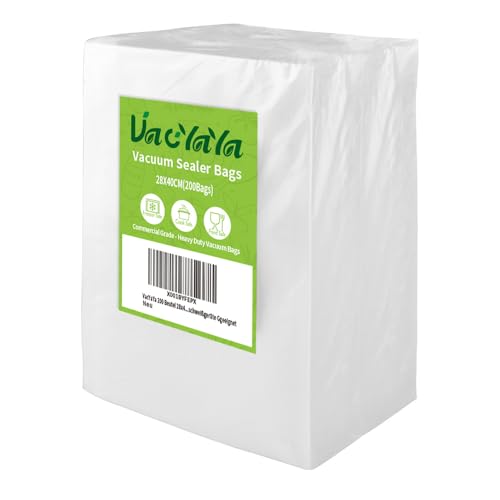 VacYaYa 200 påsar 28 x 40 cm vakuum mattätare maskin frys förvaringsväskor, Vac försegla en måltidspåsar med BPA-fri och slitstark sous vide vaccume tätning förskuren väska
