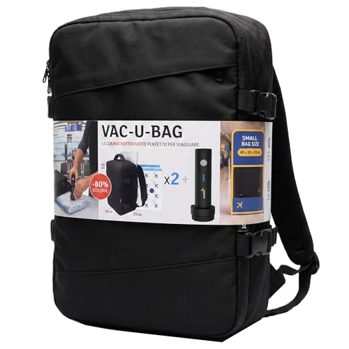 Lavatelli, vakuumryggsäck Ryanair 40 x 30 x 20 USB-C pump och 2 vakuumpåsar 40 x 45 cm | Vac-u-väska, handbagage EasyJet Low Cost | Premium kabinryggsäck för resor